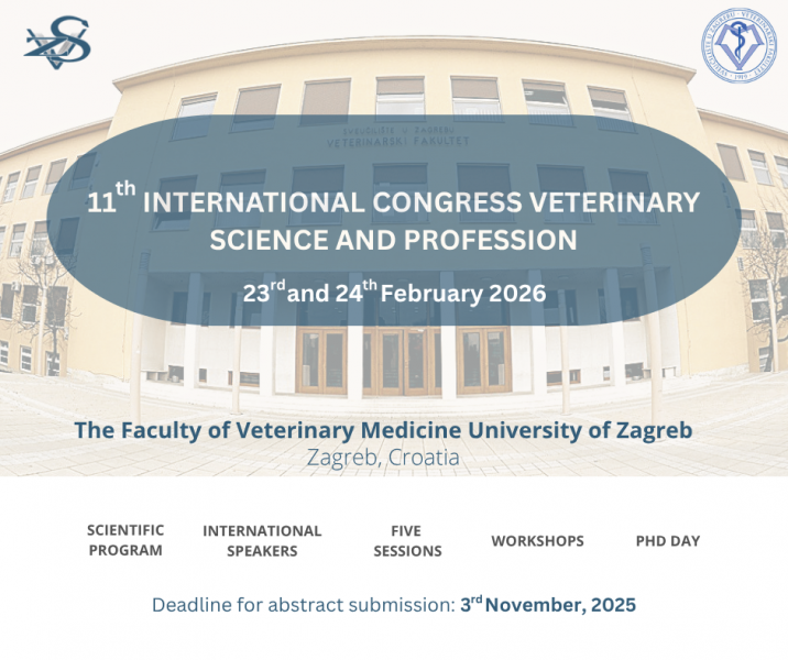 We are honored to invite you to the 11th International Congress “Veterinary Science and Profession,” which will be held from February 23 to 24, 2026, organized by the Faculty of Veterinary Medicine, University of Zagreb.