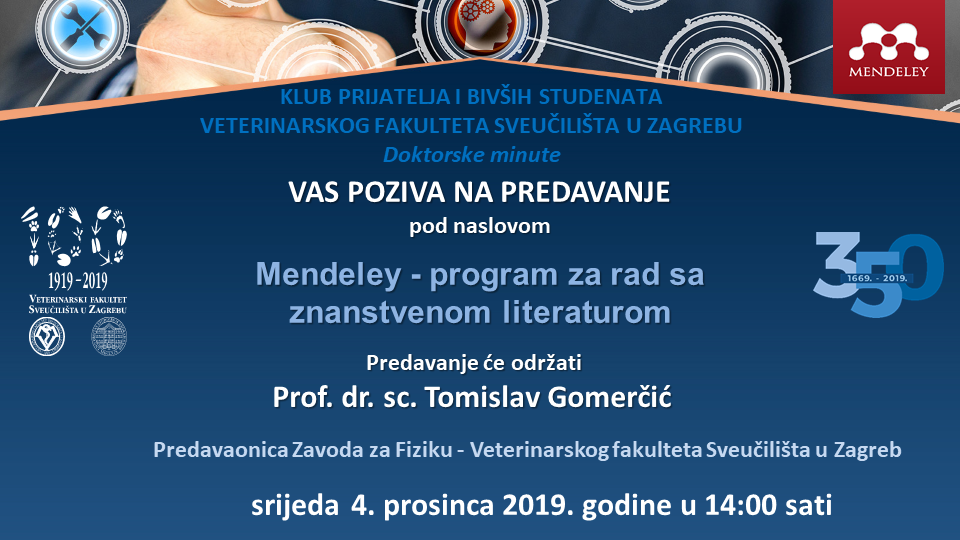 KLUB PRIJATELJA I BIVŠIH STUDENATA VETERINARSKOG FAKULTETA SVEUČILIŠTA U ZAGREBU VAS POZIVA NA PREDAVANJE