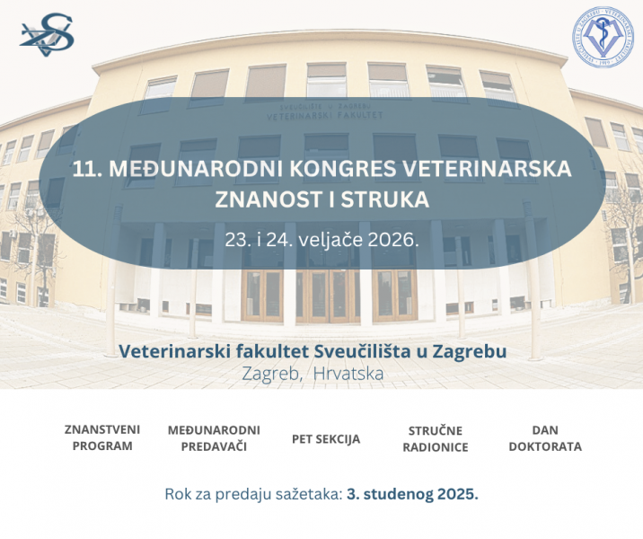 Iznimna nam je čast pozvati Vas na 11. međunarodni kongres „Veterinarska znanost i struka“ koji se će održati od 23. do 24. veljače 2026. u organizaciji Veterinarskog fakulteta Sveučilišta u Zagrebu.