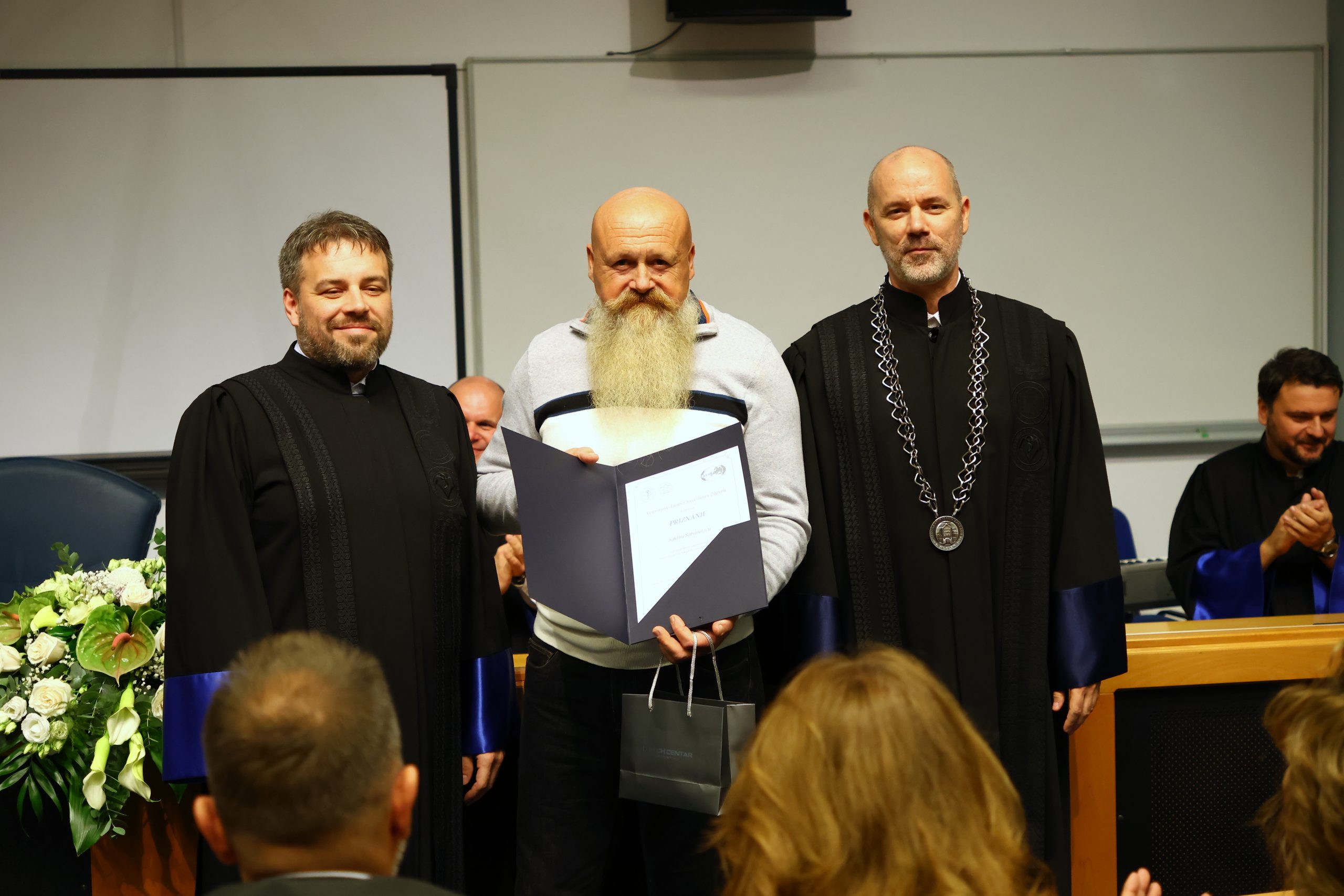 Središnji dio svečane sjednice obilježila je dodjela nagrada i priznanja zaposlenicima, studentima i suradnicima. Ove je godine Povelja Eugen Podaubsky – za posebne zasluge i doprinos u unapređenju znanstvenog, nastavnog i stručnog rada te širenju ugleda Fakulteta i veterinarske struke u domovini i svijetu – dodijeljena akademiku Draženu Matičiću.