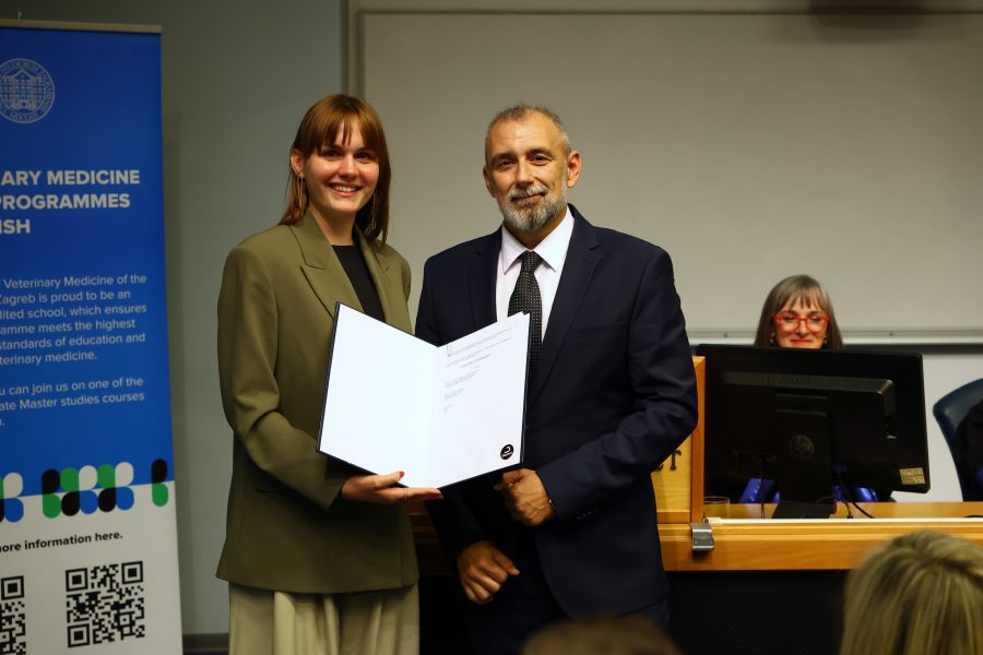 Nakon dodjele nagrada studentima slijedio je dio programa posvećen suradnji s gospodarstvom. Veterinarski je fakultet ove godine zahvalnicu za dugogodišnju uspješnu suradnju dodijelio tvrtki Medical Intertrade d.o.o., a zahvalnica je uručena predsjednici uprave Jasenki Joukhadar.