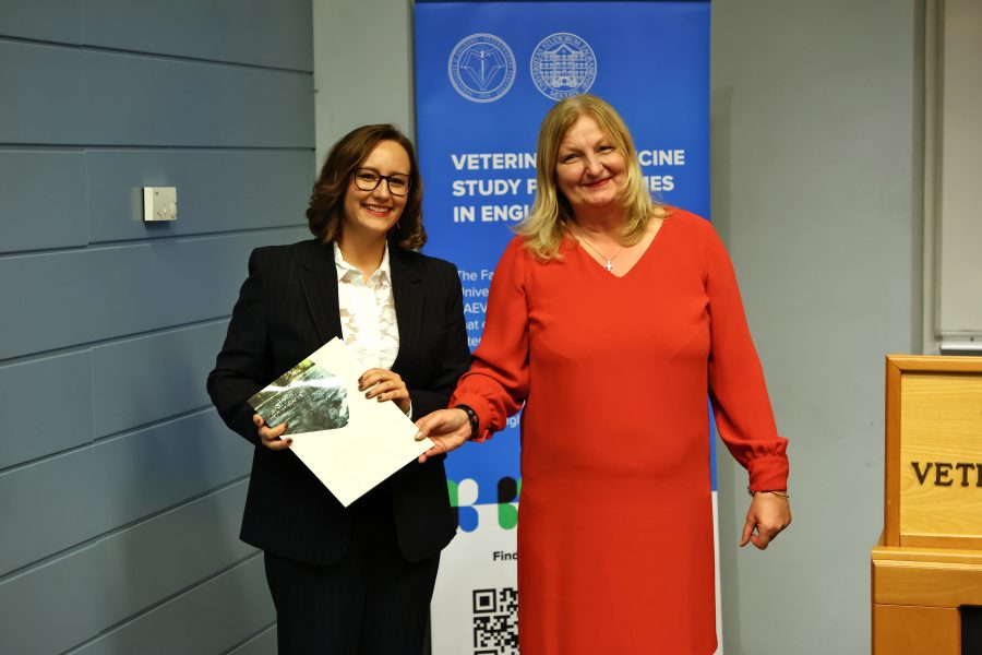 Povodom obilježavanja desetljeća studija veterinarske medicine na engleskom jeziku prisutni su mogli pogledati kratki film u kojemu su strani studenti iznijeli svoj doživljaj studiranja na Veterinarskom fakultetu u Zagrebu. Uslijedilo je zatim obraćanje prodekana za studij na engleskom studiju i cjeloživotno učenje izv. prof. dr. sc. Marka Pećina te dodjela nagrada za izvrstan uspjeh studentima studija veterinarske medicine na engleskom jeziku: Amélie Jane Couvez, Lea Janine Francine Jeanne, Marinella Gabrielle Cassandra Trompetter, Armand Jacques Hoyet-Boucaud, Ashkan Sadri i Nina Komplet. Margaux Jade Blanc ovogodišnja je dobitnica Dekanove nagrade. Uime studenata prisutnima je zahvalio student Ashkan Sadri koji je i autor filma o Sveučilišnoj veterinarskoj bolnici i iskustvu studenata u praktičnom radu u okviru SVB-a.
